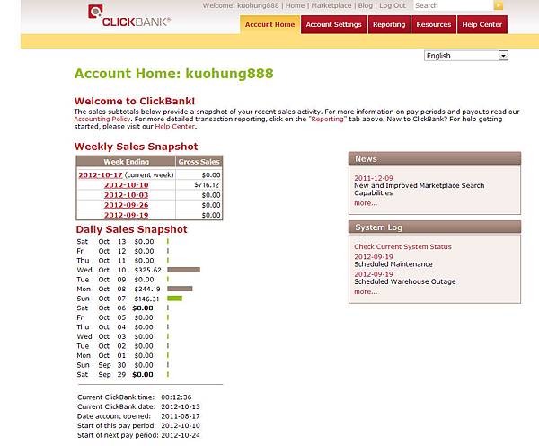 老師公布我陣子的clickbank 傭金收入,老師沒有認真做喔~